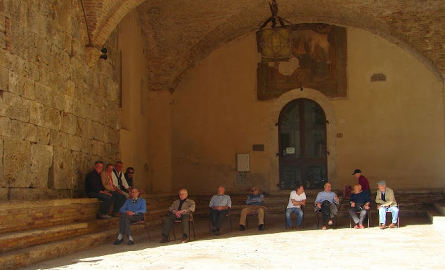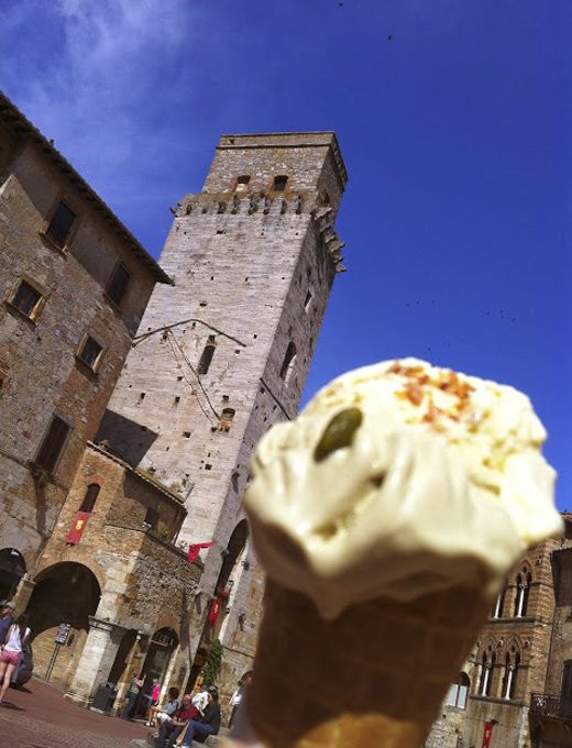 Fôlego recuperado, hora de um spritz seguido de um almocinho leve com vista do paraíso. Um brinde a dolce vita e voltamos à praça principal, onde turistas ora disputam lugar nas filas das duas gelaterias que concorrem ao título de “melhor gelato” de San Gimignano, ora exploram os melhores ângulos para as fotos. Os moradores reunidos, observam aquilo tudo, conversando ou tirando uma soneca, mas curtindo preguiçosamente mais um dia se despedindo.