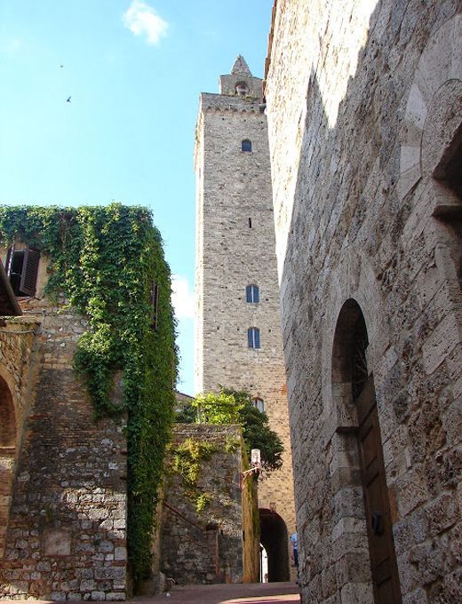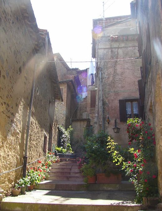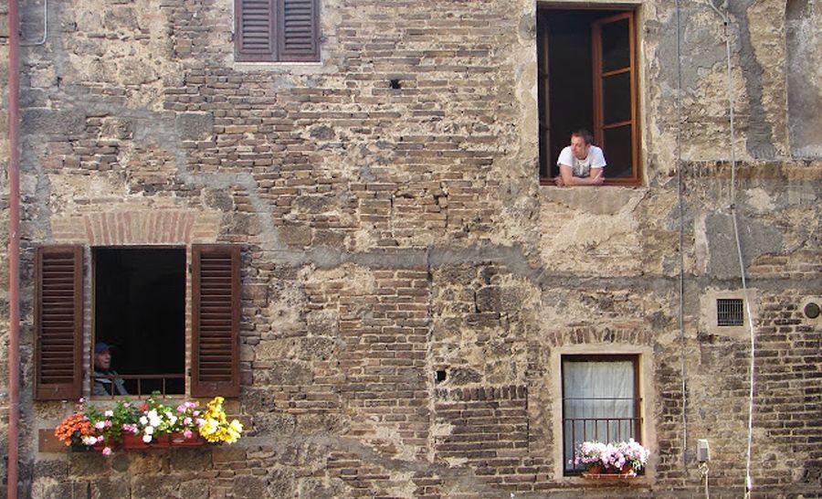 Além da paisagem da cidade – as construções medievais todas do mesmo tom – você está envolta/o naquele cenário típico da Toscana com direito ao aroma dos jasmins em todo lugar. Era um dia bem quente e o Sol reinava absoluto, sem uma nuvem no céu, mas soprava uma brisa e o cenário não poderia ter sido mais perfeito: o vento espalhava pluminhas brancas de uma flor típica da região por toda a cidade. Eu não sabia se estava numa tela de pintura ou numa cena de cinema.