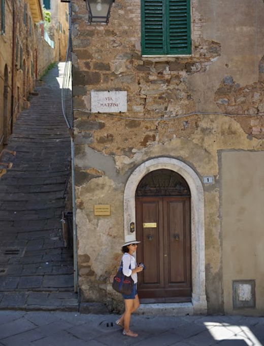 Montalcino fica no alto de uma colina. É uma cidadezinha linda e para quem não sabe é famosa por ser a produtora do famoso vinho Brunello de Montalcino. A cidade, como várias na região, está entre muralhas, e a ordem é subir, e põe subir nisso. Algumas ruas chegam a ter um corrimão para dar uma forcinha…