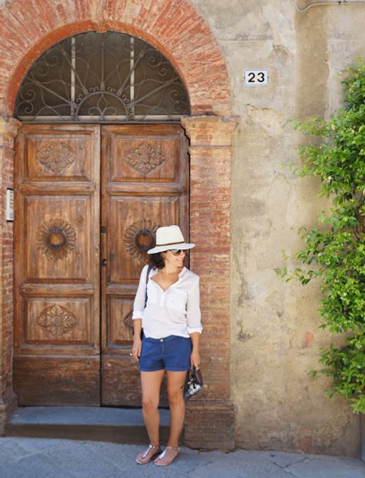 É uma cidadezinha encantadora e bastante turística. Lojinhas, cafés, bares, gelaterias, restaurantes convidativos. Quase impossível não parar em um deles. Estava um dia muito quente. E minha primeira comprinha na Toscana foi um chapéu que me acompanhou até Roma. Além dele, descobri uma loja de joias artesanais e não pude resistir: trouxe comigo um lindo bracelete. Assim como é quase impossível você caminhar sem parar para fotos.