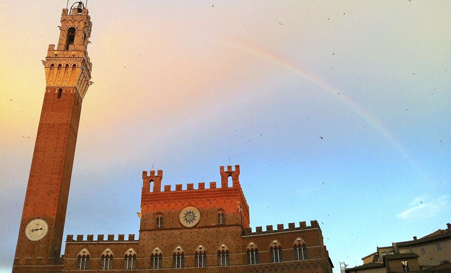 Cheguei em Siena no início da tarde. Não me pareceu assim… uma emoção, mas eu lembrei que só estava lá porque queria explorar as cidades menores. Saí para explorar a cidade e então descobri… Siena é linda. Caminhando entre uma ruela e outra encontrei a Piazza Del Campo. E perdi o ar. Novamente senti aquele arrepio pelo corpo todo e aquela sensação de pertencer ao lugar. Os pensamentos emudeceram e fiquei lá um tempo literalmente parada, sem ação nem para fotografar. Só enxergava uma praça dourada onde as (muitas) andorinhas dançavam e faziam acrobacias no céu. As crianças corriam pela Piazza anunciando as férias. Um cachorro e algumas pombas disputavam um espaço para beber a água da fonte ao lado. Eu podia sentir a aura poderosa da cidade. Foi amor à primeira vista. É imponente, grandiosa, mas sem ser ostensiva. Uma arquitetura única. Muitos jovens nas ruas. Então comecei a fotografar. Mas confesso, receio que nenhuma foto conseguiu captar e reproduzir a beleza daquela tarde em Siena.