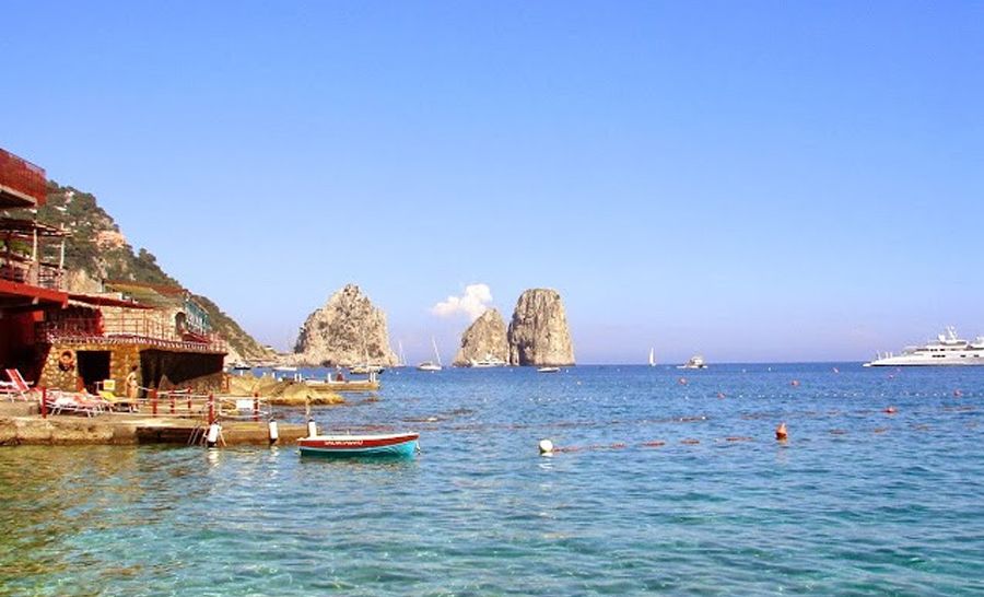A famosa ilha de Capri é um charme só. Imagino como deve ter sido nos anos 70. O atrativo principal são os passeios de barco. Nós optamos por ficar em confortáveis espreguiçadeiras até cansar (cansar do quê mesmo?). A praia escolhida foi a Marina Picolla dona daquele visual que talvez seja o principal cartão postal da ilha. E pra chegar lá, se não for de barco, é pegar o funicular até o topo da ilha e de lá um minibus. Ficou o gosto de quero mais. Capri merece a estadia de dois dias inteiros para conhecer a ilha toda, de carro e de barco, e sua vizinha Anacapri; e não ficar refém dos horários dos barcos, que também, como os ônibus, e digo isso com bom humor, podem ser alterados.