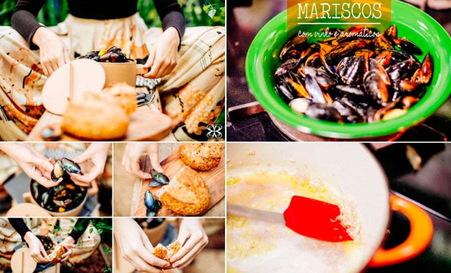O melhor desse preparo é a facilidade,. Rapidinho você tem uma panelada de mariscos que pode servir com pão, batatas fritas ou assadas (experimente com batatas doces assadas, é de comer rezando!).