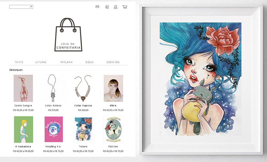 Entre os primeiros produtos, estão livros, pôsteres, prints e peças originais criados pelo time de autores e ilustradores que fazem parte da Confeitaria. Além disso, acessórios-conceito, como a coleção LouLou — Bia Perotti para Bitri, também estão por lá. Yay! As incríveis bijoux da designer Beatriz Losso também. Assim como algumas das lindas fotografias do fotógrafo Jorge Sato e as louças pintadas à mão pela artista Renata Miwa.