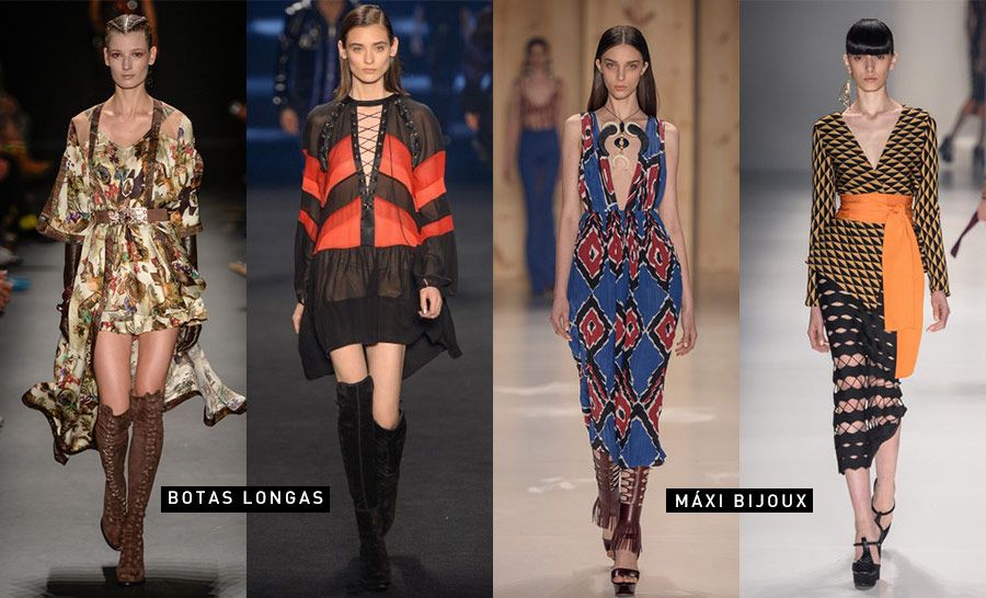 Seja nos vestidos, saias mídi ou kimonos, elas marcaram presença em grande estilo. Sou suspeita porque a-do-ro este estilo. Toque boho certeiro! Onde: Reinaldo Lourenço, Iódice e Voictor Dzenk.