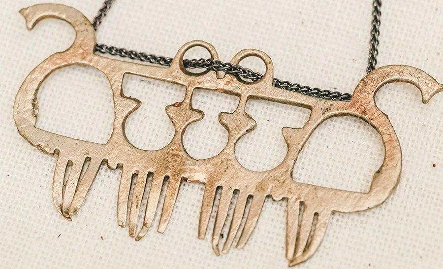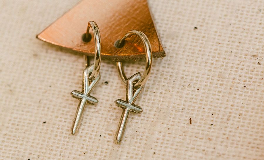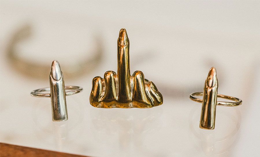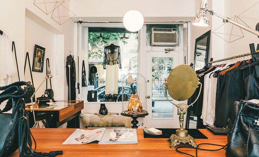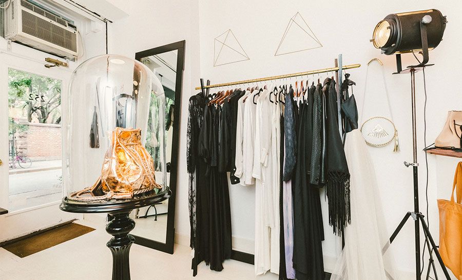 A decoração tem um quê de sombrio, a começar pelo visual da dona da loja, e ainda cabelos pendurados na parede, tules, cruzes… Curioso!