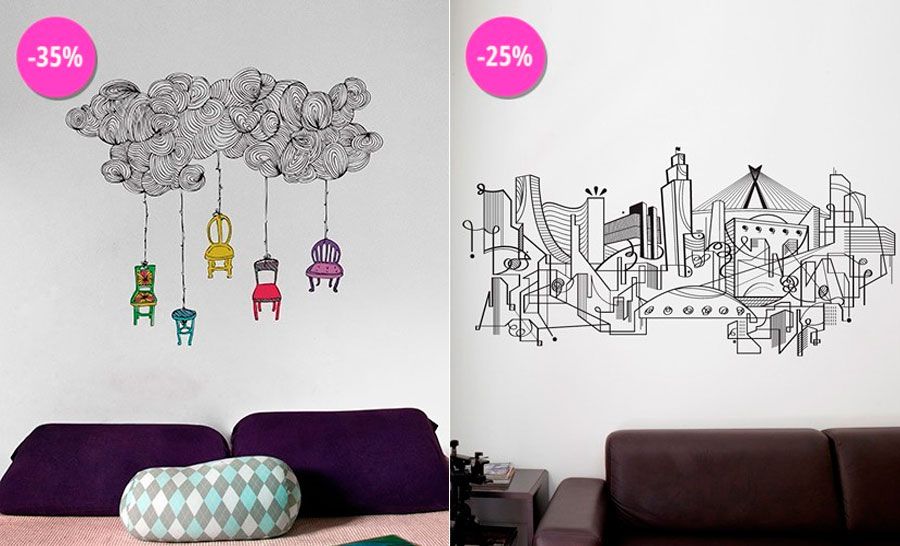 Adesivos de parede assinados, como o SP Skyline e o Nuvem. Desenvolvido pelo designer e artista Raphael Sonsino e Estúdio Pumpkin, respectivamente.