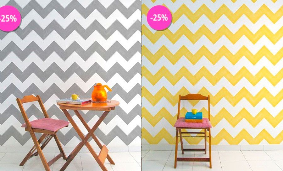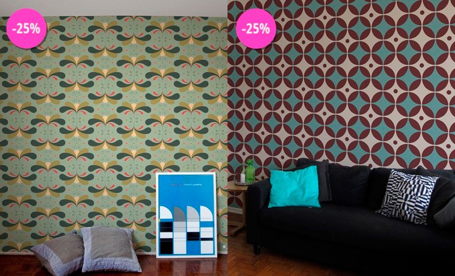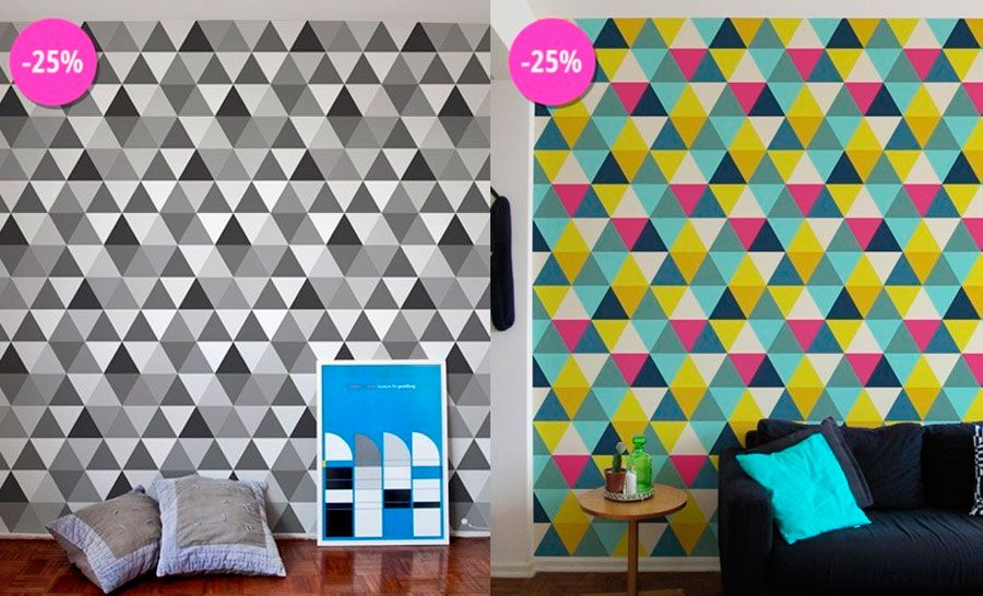 Além de claro, muita Maxiestampa, o papel de parede adesivo da Kola. Tem estampa Retrô, Chevron, Pixel. Retrô assinado pela Cyla