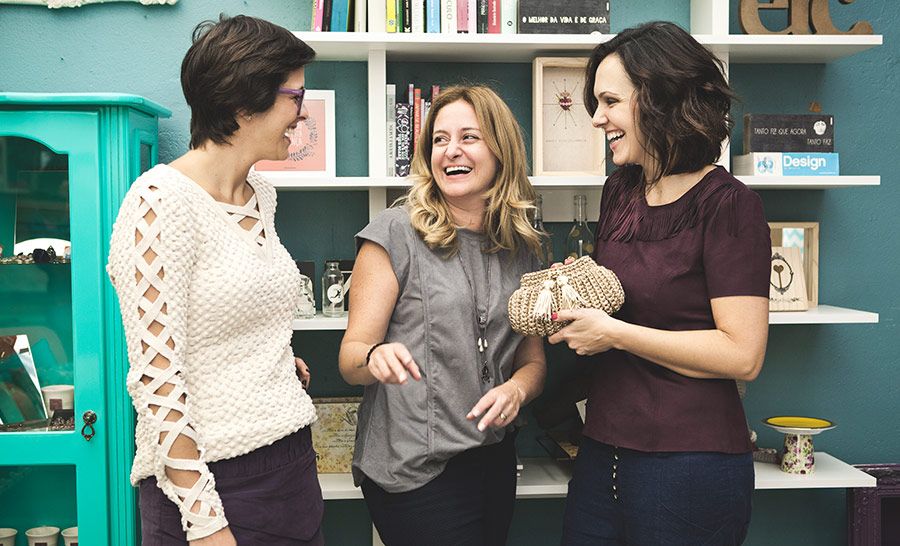 A curadoria é feita pensando na cliente! É realmente muito pessoal essa relação que temos com elas, desde a criação da coleção. Buscamos sempre – em primeiro lugar – peças que dificilmente serão encontradas em outros lugares. Sempre buscamos novidades, produtos únicos e com um toque artesanal. Nossos sapatos e bolsas, sempre feitos à mão, são escolhidos material por material, cor por cor, etc – por nós mesmas! Por isso são estes produtos geralmente que fazem mais sucesso aqui na loja, por serem tão únicos e especiais.