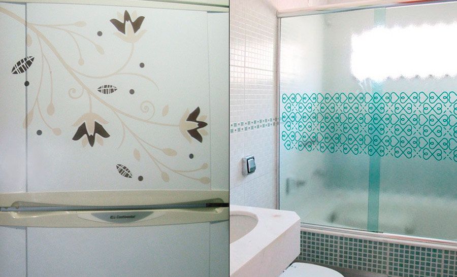 Dá para usar os adesivos de parede até no box do banheiro, sabia? Usados horizontalmente, eles trazem cor e forma para o espaço e ainda dispensa o uso daquelas cortininhas de plástico. Você pode cobrir o vidro dos pés à altura do seu tórax, para criar uma divisão e dar mais privacidade a quem está no banho.