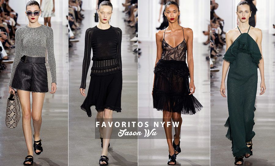 Jason Wu apostou nos tecidos rústicos – mostrei de pertinho no snap! Pude conferir a coleção de perto no re-see da marca, e a mistura de linhão e a trama mais rústica, com renda e até penas leves de avestruz ficou muito especial (penúltimo look da montagem na nossa galeria).