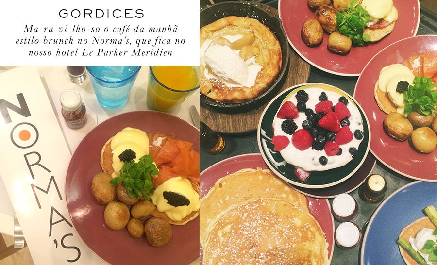 Ah, o Norma’s… Ele é super tradicional em NY pelo super café da manhã estilo brunch. As porções são gigantescas e o propósito é ser aquele tipo de comida preparada em casa para a família numa manhã de um fim de semana, sabe? Abundância em tudo! Comi eggs benedict com salmão que estava divino e de sobremesa dividimos essa big french toasts com Nutella e morangos. Oh God!