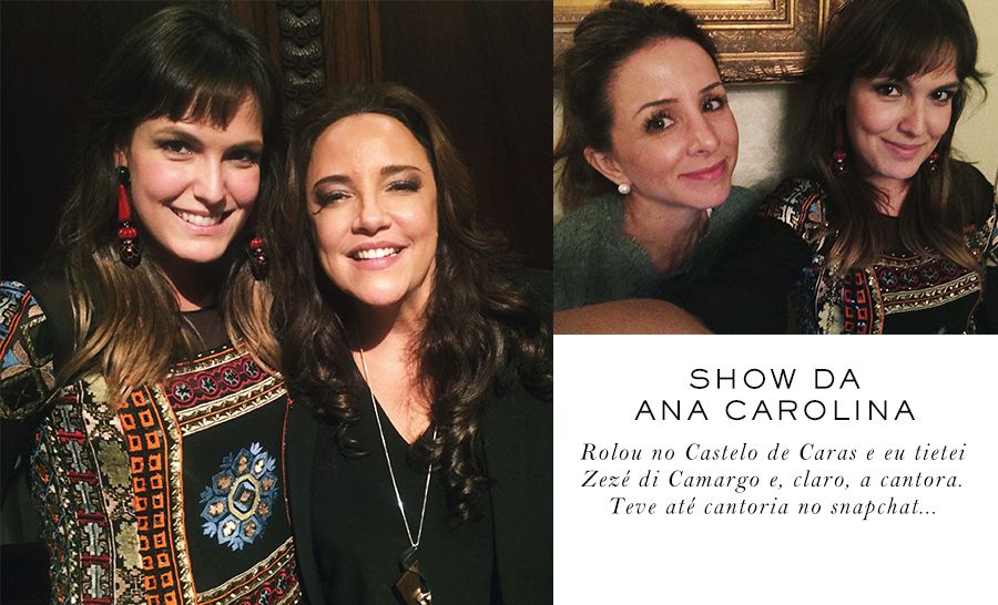 A noite um evento incrível no Castelo de Cars: show Ana Carolina somente para convidados. Gente, foi demais! Gravei um snap tietando o Zezé di Camargo cantando “É o amor” e, claro, com a Ana Carolina que cantou com a gente também para o snap “Quem de nós dois”. Quem não me segue perdeu. Rs!