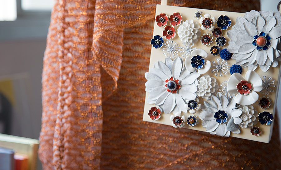 Agora no quesito acessórios (minha paixão!), bolsa de resina com aplicação de flores em couro da Pat Bo e brincos de resina da by.mumi. Não parece que é a mesma flor da bolsa? Adoro essa brincadeira!