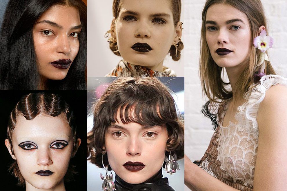 Para o inverno 2016 lá de fora, algumas marcas como Ungaro, Marc Jacobs, Sibling, Rodarte, Chloé e Vivienne Westwood apostaram no batom escuro para a sua beleza.