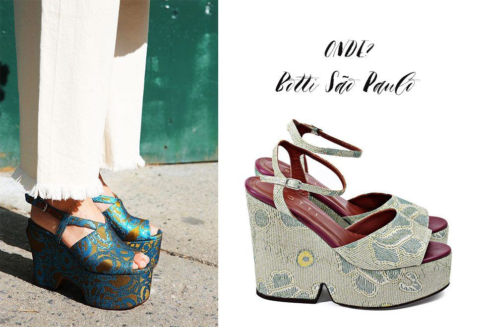 O segundo modelo, a anabela em tecido brocado foi vista nos pés da Leandra Medine e achei um modelo tão lindo quanto, senão mais, na nossa parceira Botti São Paulo.