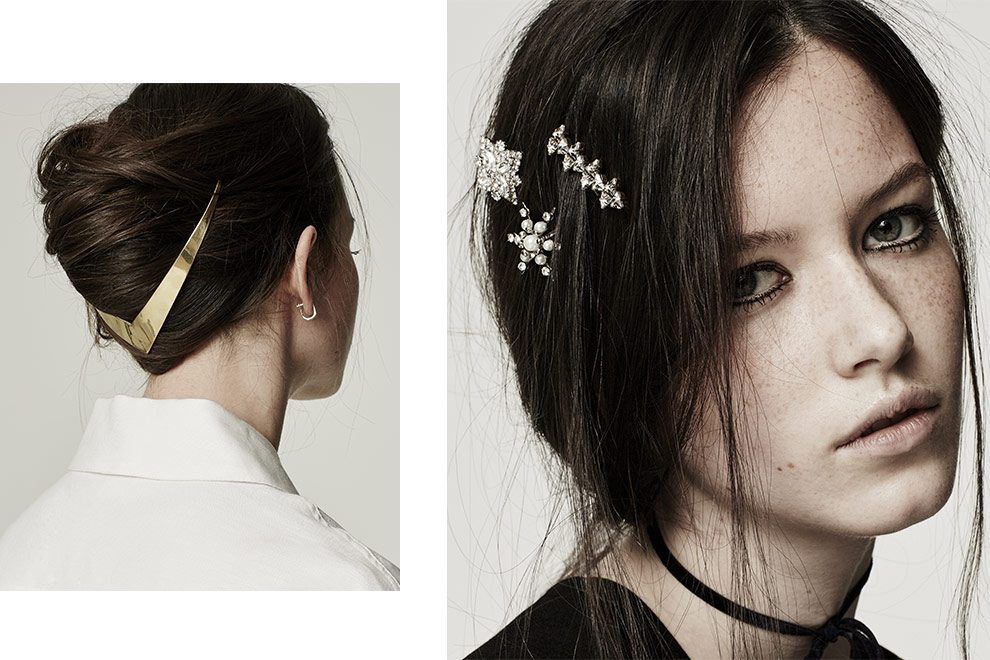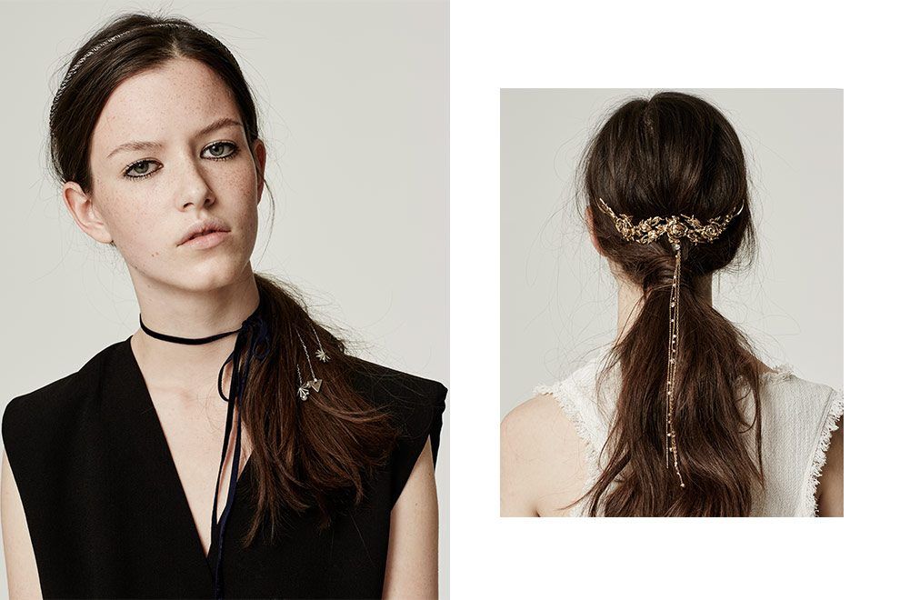 Headbands que mais parecem auras de anjos e santos, correntes delicadas que caem em cascata de grampos, tiaras que lembram corroas da realeza e pins que podiam fazer parte do figurino de um filme de princesa.