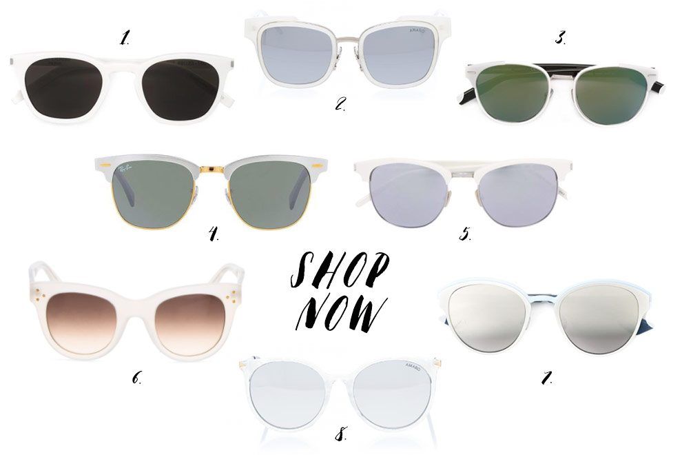 Temos visto muitos óculos com armações brancas nos looks de street style. Eles têm uma pegada retrô bem glamurosa, principalmente os modelos gatinho – eu adoro!