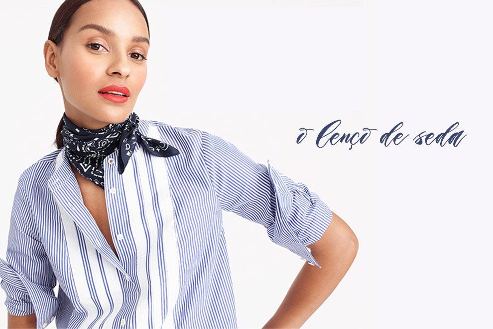 - Lenço de seda: usado no pescoço, na cabeça, como cinto, na bolsa, ele deixa qualquer look mais interessante.