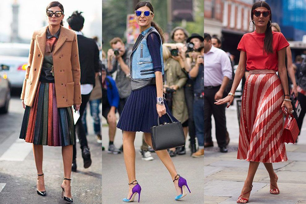Depois de ver essas fotos temos certeza de que uma bela saia plissada pode ser item coringa no armário, ficando bem em looks de trabalho ou com camiseta e sapatilha para o final de semana.
