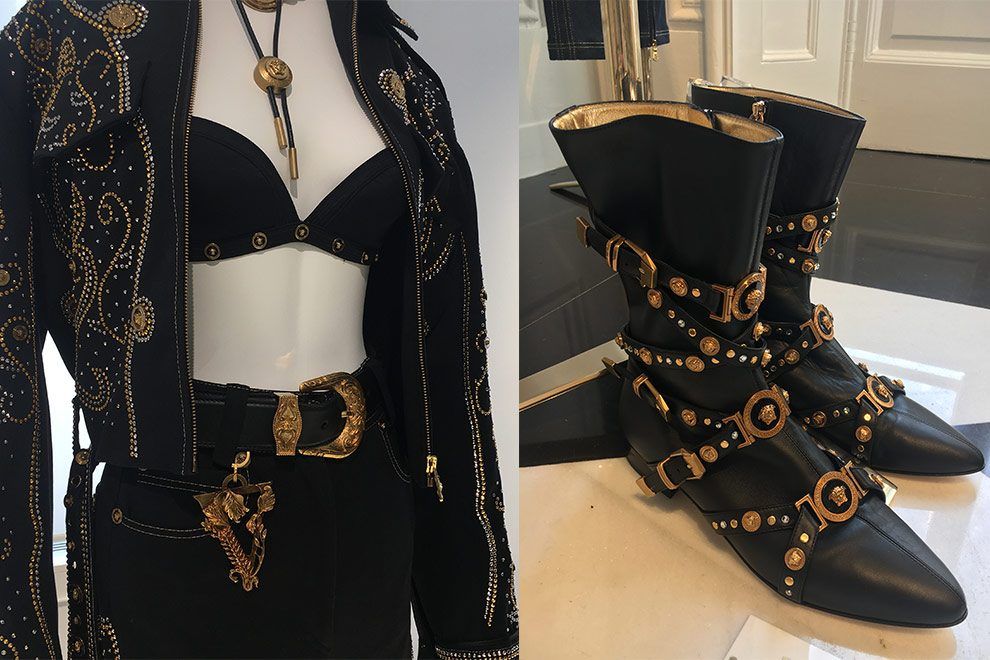 Já a Versace fez um desfile homenageando Gianni Versace, em respeito aos 20 anos de seu falecimento, colocando nas passarelas alguns de seus hits como as estampas de fundo do mar e capas de Vogue, animal print, além de itens em alfaiataria com color blocking em tons vivos como roxo, laranja, o famoso bordado barroco com temas religiosos como cruzes e santos, bem típico italiano. O ponto alto foi a coleção com pegada western que tem tudo para se tornar febre nas próximas estações. Anote: franjas, botas, medalhas, couro, camisas… vai bombar! O que mais amei? As bijoux fantasia! Vontade de colecionar…