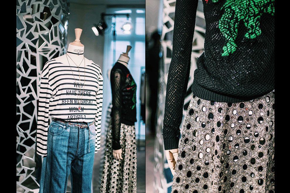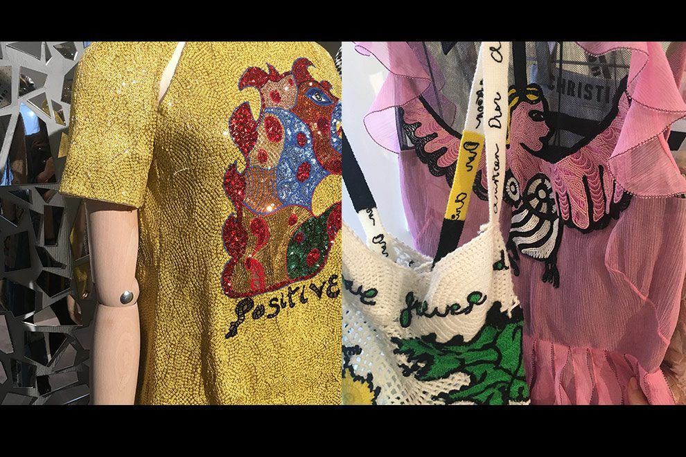 Na Dior a homenagem de Maria Grazia Chiuri foi a Niki de Saint Phalle, artista conhecida por seus desenhos coloridos e lúdicos que apareceram em peças em tule, musseline e couro, dando um toque artsy a peças extremamente femininas da coleção. Vi também muito brilho para ser usado em contraponto com peças fortes e com pegada esportiva, styling do qual Maria é fã! Para variar, os acessórios foram o que fez olhos brilharem… ai, ai!