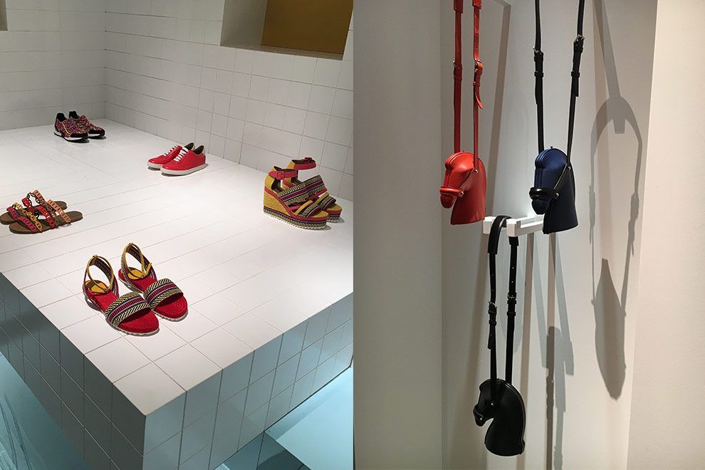Na Hermés o que mais amei foi a bolsa em forma de cavalo – wishlist já, super sacada! Destaque para o macramê colorido nos sapatos, toque étnico nos bordados dos solados e itens neutros com bossa, com salto bloquinho ou tipo slide. As bolsinhas com desenhos tipo grafite também prometem ser hit!