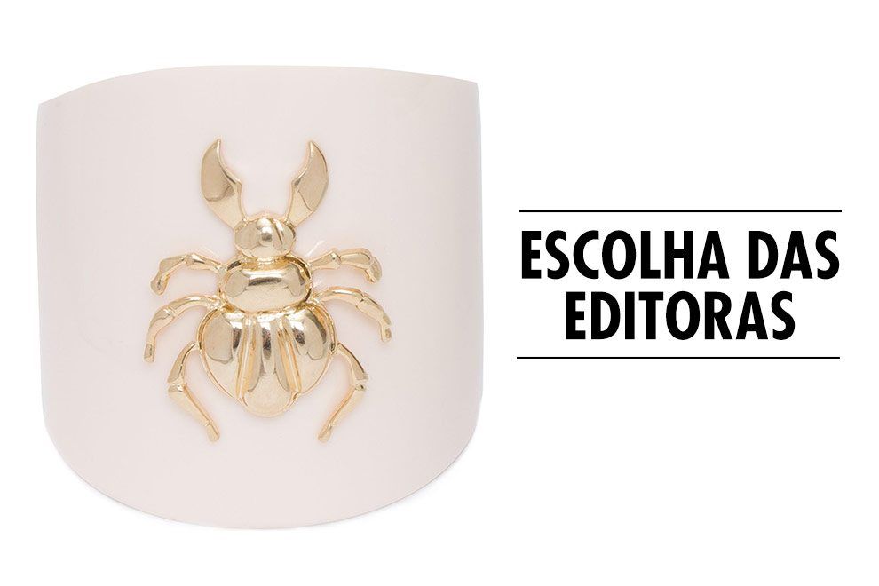 Estamos a-pai-xo-na-das por esse bracelete da Bianca Bertoni. Em resina no tom areia, com escaravelho em metal com banho de ouro, ele parece uma bijoux vintage, daquelas que nossas avós nos deixariam de herança, sabem?