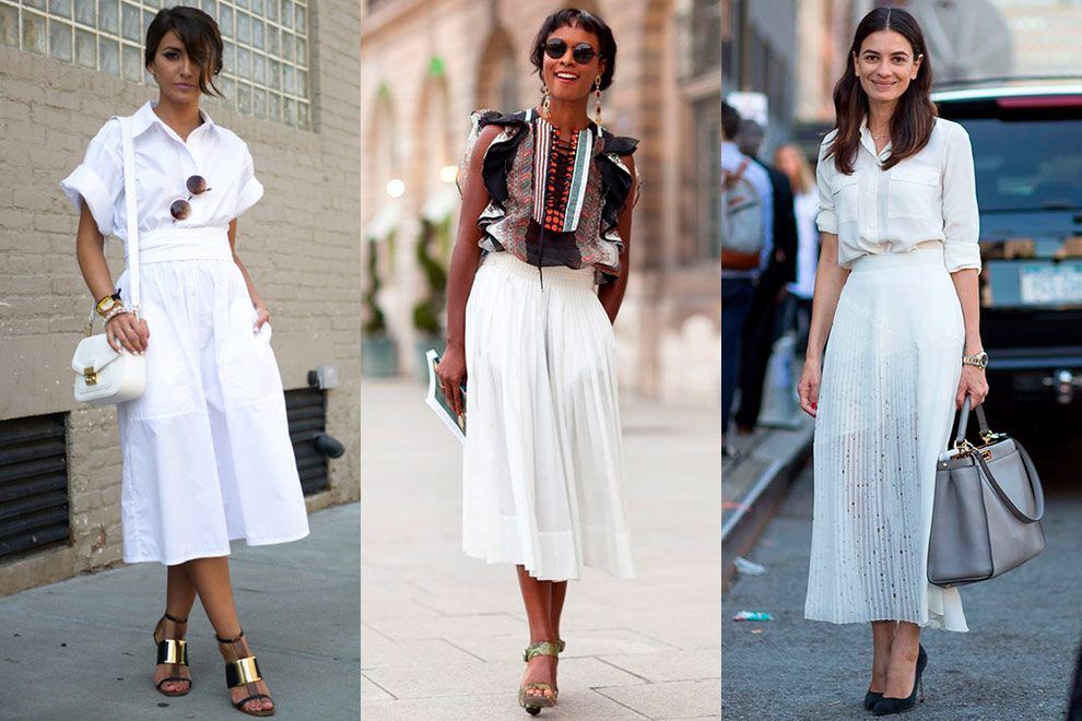 Uma ótima solução para os dias de calor intenso são as saias mídi. Femininas, elegantes e leves, elas são adequadas ao ambiente de trabalho e super fresquinhas. Os modelos lápis são mais ajustados ao corpo e valorizam as curvas, já as saias com modelagem em “A” disfarçam quadris largos e deixam a gente com aquela cinturinha.